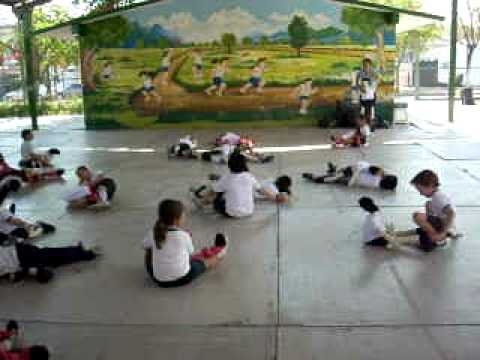 Niños desde 4 hasta 6 años desarrollando habilidades motrices básicas que se encuentran en primera fase, como correr, caminar saltar, bailar; lo perciben a través de la vista, el oído e imitan el movimiento bailando al ritmo de la musica con simulador como compañero; se percibe una orientación de como hacerlo por parte del docente.